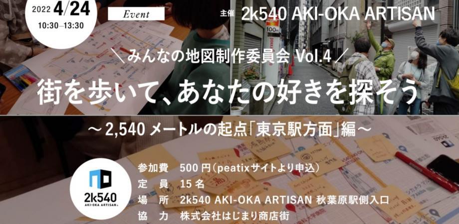 今回のイベントは、2k540 がある秋葉原〜御徒町エリアから、半径2,540メートル圏内にある「東京駅方面エリア」の街を散策します。
