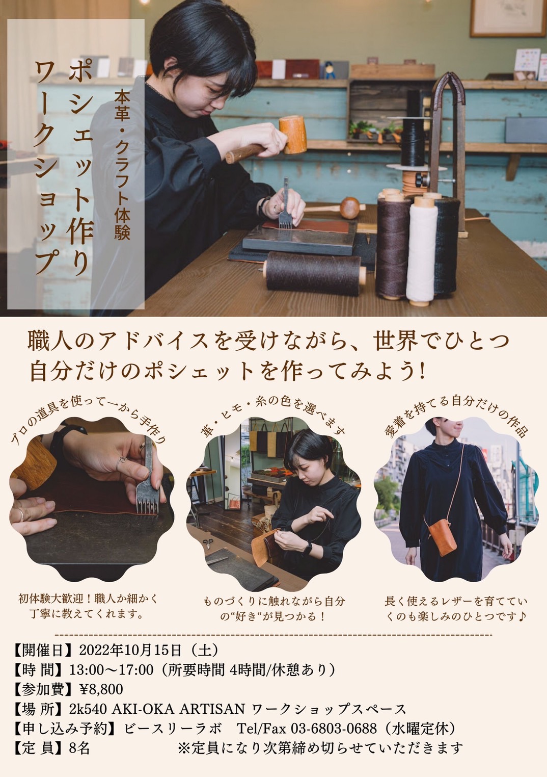 10月15日㈯に2k540ショップから特別なワークショップを開催します。今回お届けするワークショップは「ポシェット作り」。