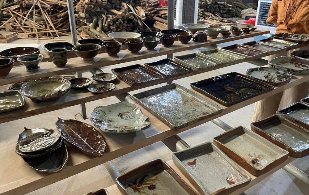 2021年8月に開始した本事業は、現地の大物陶器制作による陶土の大量消費と大量生産による価格低下の課題を解決するため、磁器のように薄くて軽い高取焼や小石原焼の技法を活用した茶器や皿をはじめとした小型の付加価値の高い陶器を生産するものです。原料は、現地で採れる土や植物のみを使用し、蹴りろくろで成形し、薪窯で焼き上げる持続可能でオリジナリティーの高い陶器作りを目指すものです。2022年9月よりフーラン村にて東峰村の高取・小石原焼きを中心とした基礎技術指導を行ってきました。この度は、基礎技術指導を受けた者の中から今後の陶器制作をリードしていく14名のマスター生を選び、質の高い器作りの技術習得に励んだ成果を発表いたします。