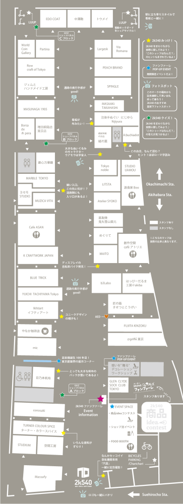 2k540のショップをめぐり、専用マップに各ショップのロゴスタンプを押して、自分だけのオリジナルスタンプマップを完成させよう!