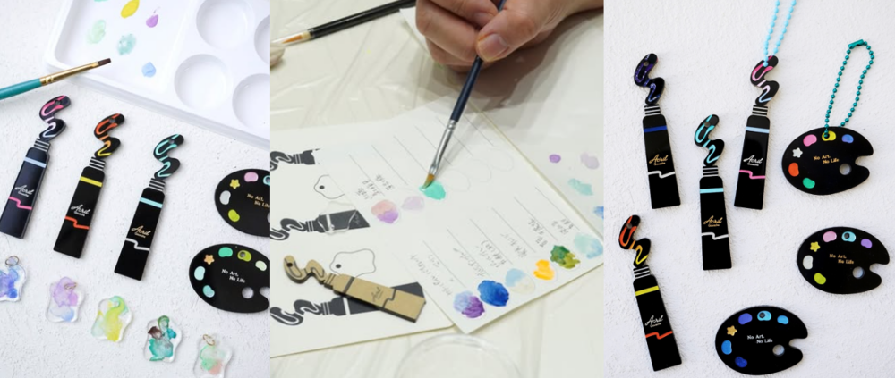 アクリル絵の具を使ってみたかった方や、アクリル×アクリル絵の具でアートアクセサリーを作ってみたい方にとってもオススメ。初心者の方でも色の塗り方を丁寧にお伝えするので安心してご参加いただけます。