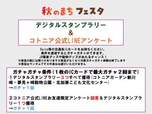 ☆☆デジタルスタンプラリー・コトニア公式LINEお友達アンケート各条件達成で1枚のICカードで最大2回までガチャガチャが回せます☆☆