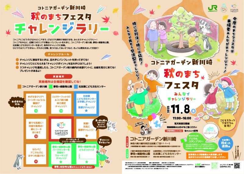 コトニアガーデン新川崎・夢見ヶ崎動物公園・北加瀬こども文化センターを巡って各所のチャレンジに挑戦していただきます♪