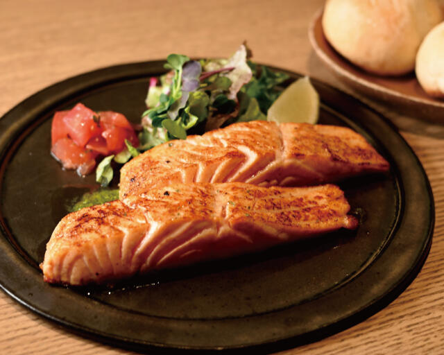 レアに焼き上げたサーモンは、ふっくらしっとり。